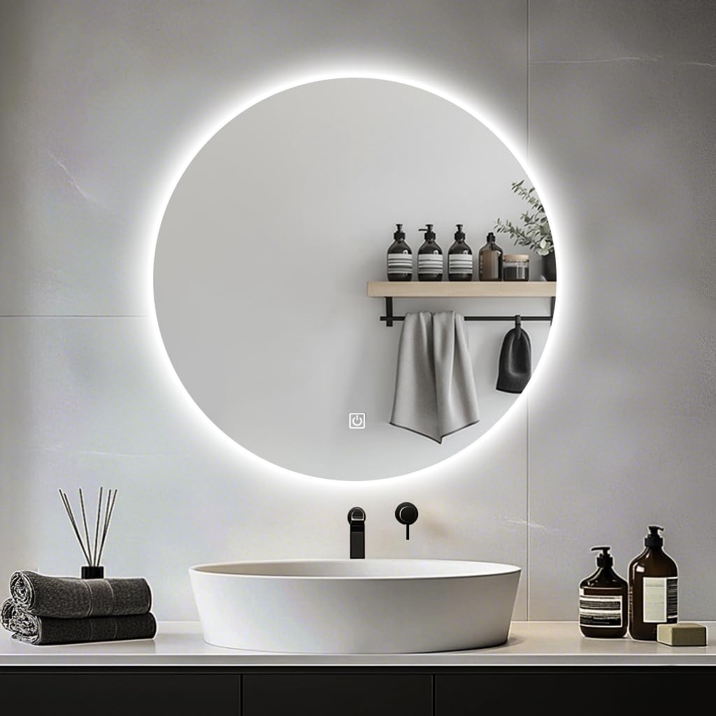 Espejo de baño LED Gloviea (redondo) con luces regulables y antivaho (sin cobre)
