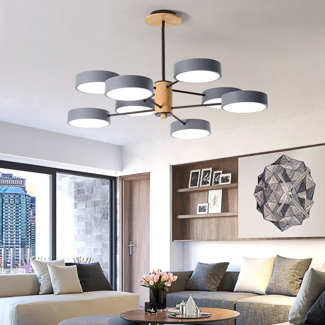 Gloviea - Lámpara de techo nórdica LED Warm&Love de 8 luces (Lámpara de araña moderna de madera y acrílico)