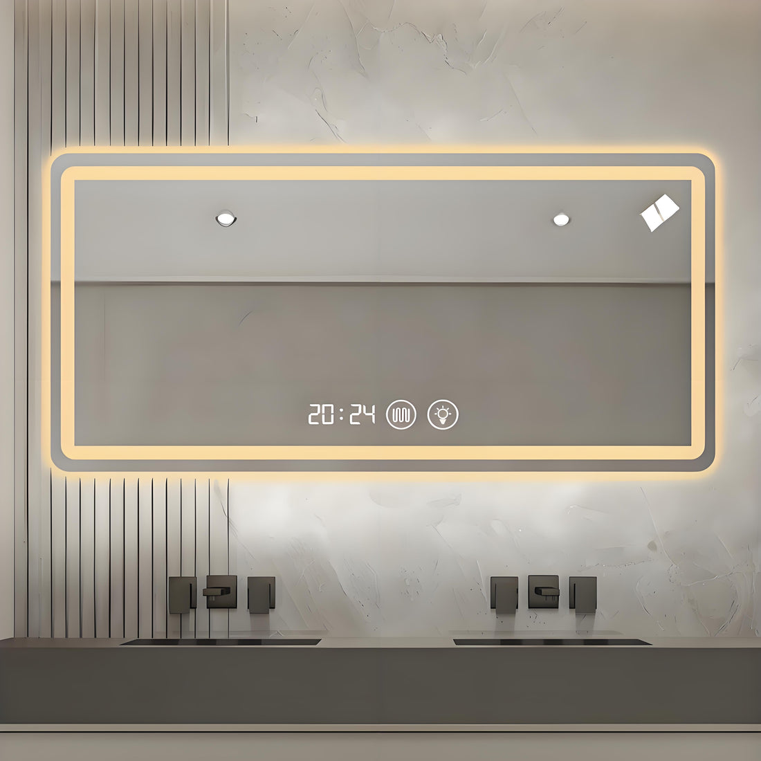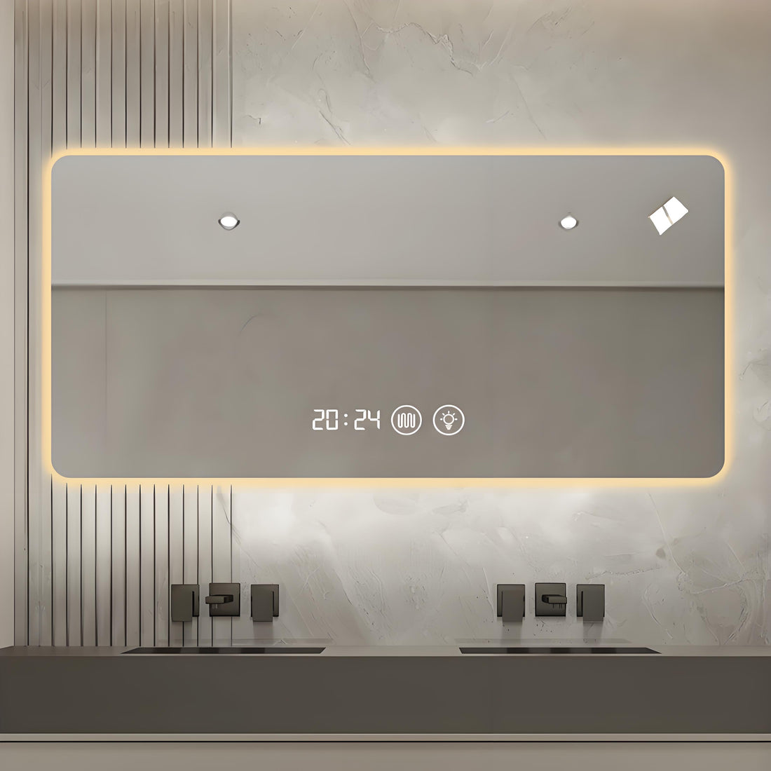LED Bathroom Mirror with Curved/Rounded Corners – Dimmable Lighting (Front-Lit + Backlit), Anti-Fog, Radar Motion Sensor, Time & Temp Display