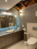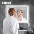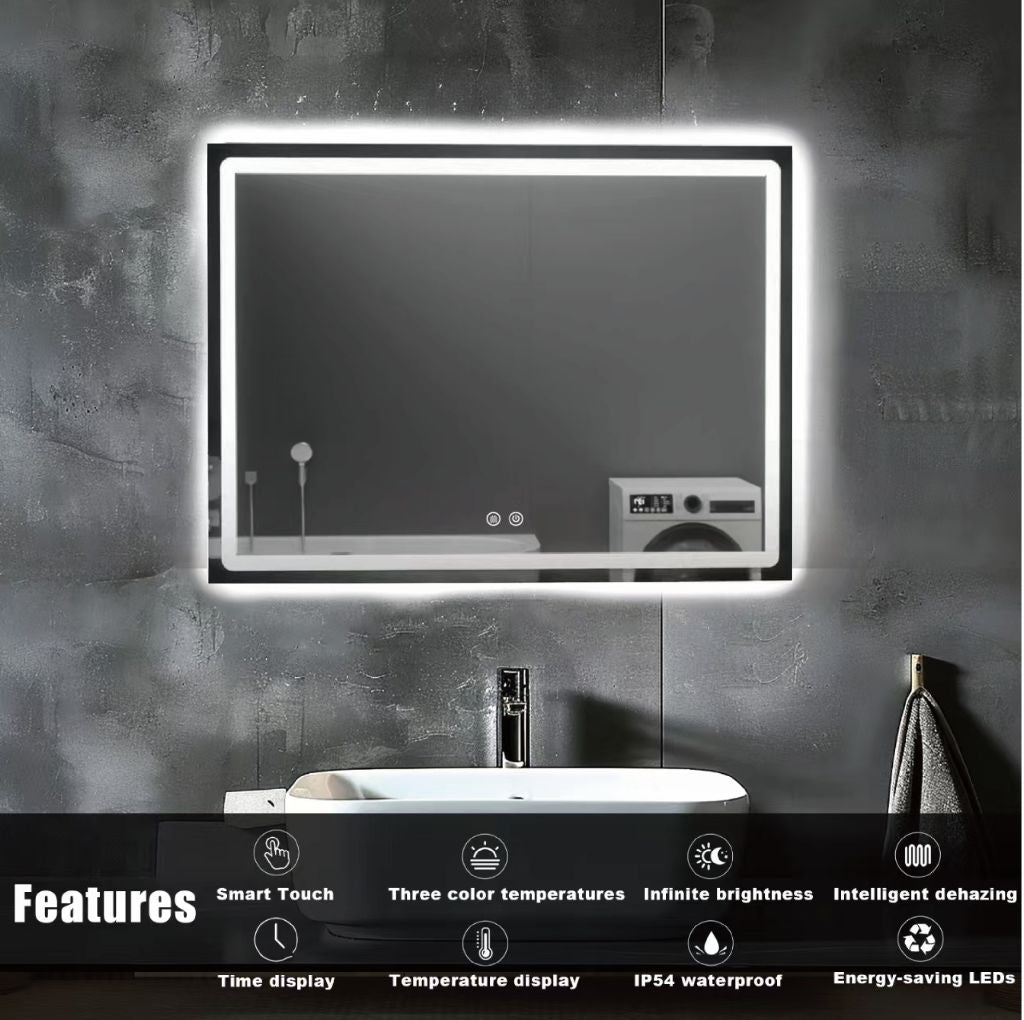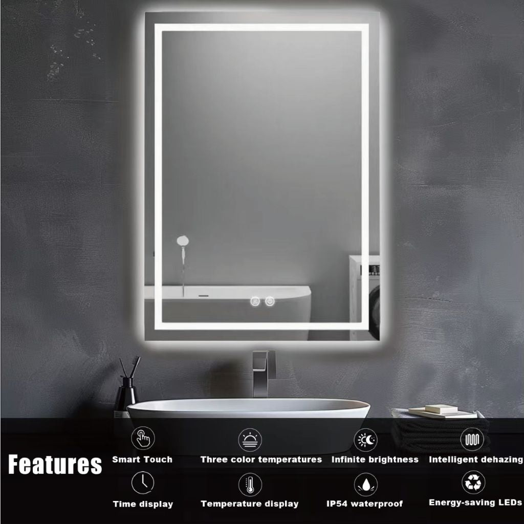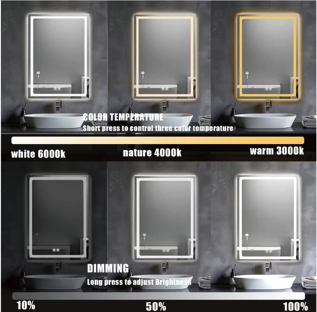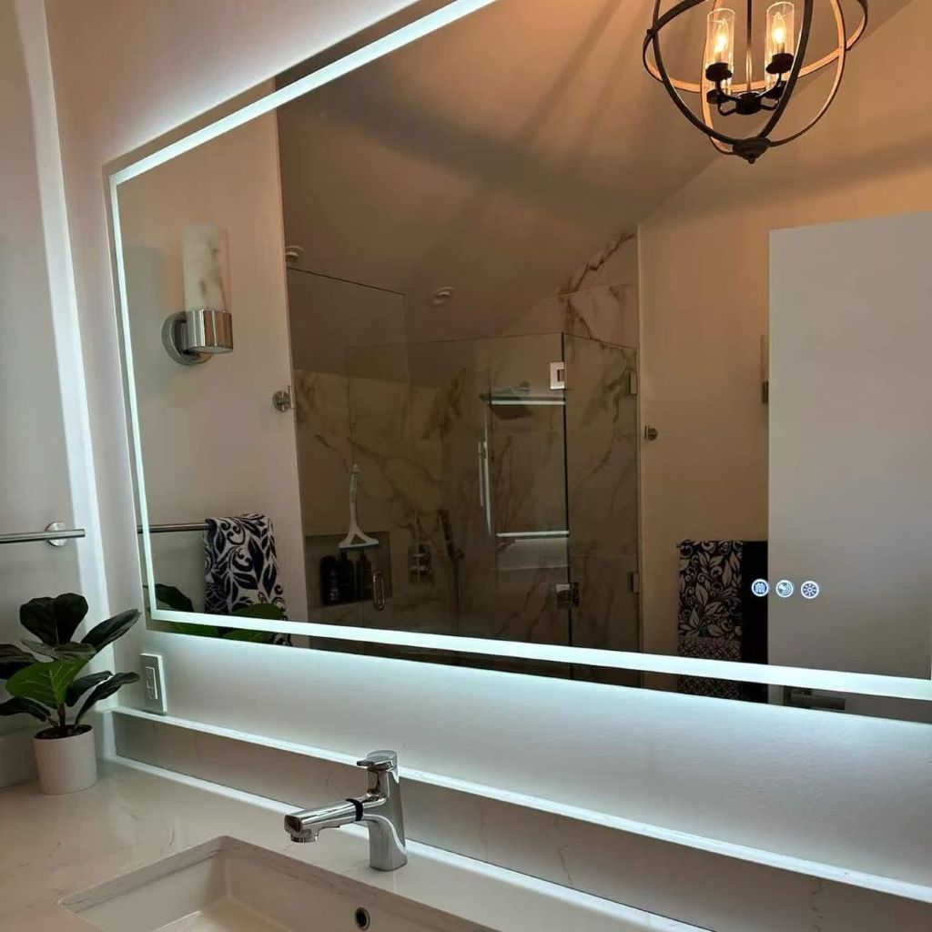 Espejo de baño LED Gloviea con esquinas cuadradas pulidas, luces regulables y antivaho (sin cobre)