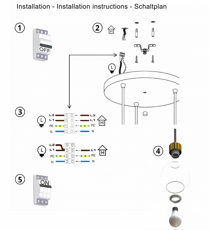 - Altura ajustable: la longitud máxima de suspensión de 70 cm le permite personalizar la altura de caída para adaptarse a su techo y preferencias de ambiente.