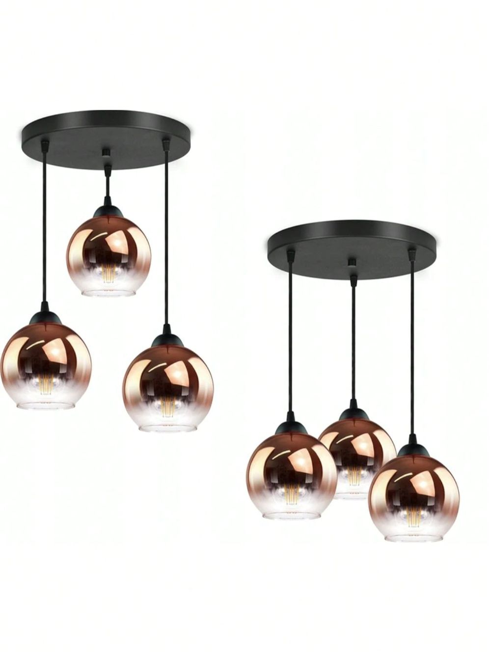Gloviea - Lámpara colgante de globo de cristal Warm&Love, estilo industrial elegante, 3/4/5 luces (3 opciones), altura ajustable, diseño loft moderno (dos colores: dorado/oro rosa)